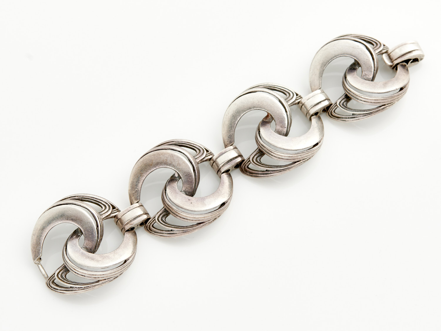 A HEAVY FANCY LINK BRACELET IN STERLING SILVER, LENGTH 180MM, 101.65GMS