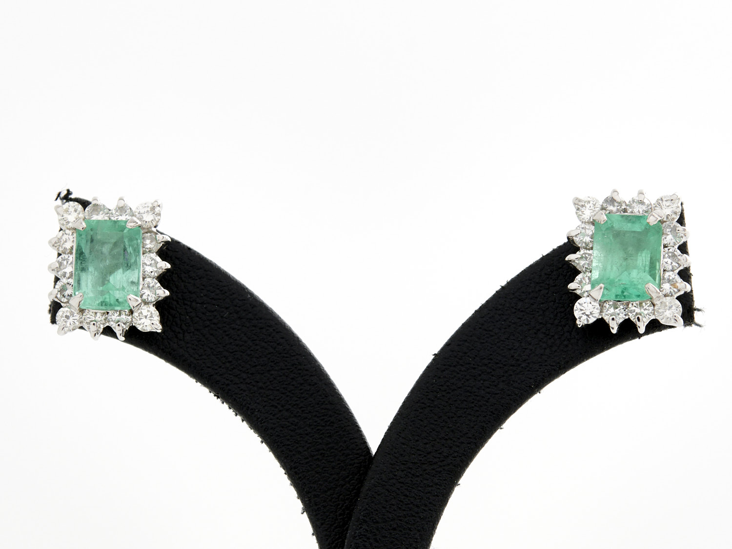 A PAIR OF COLUMBIAN EMERALD AND DIAMOND EARRINGS, THE EMERALD WEIGHING 3.4CTS, THE DIAMONDS TOTALLING 1.12CTS, TO POST AND BUTTERFLY FITTINGS, ACCOMPANIED BY A VALUATION