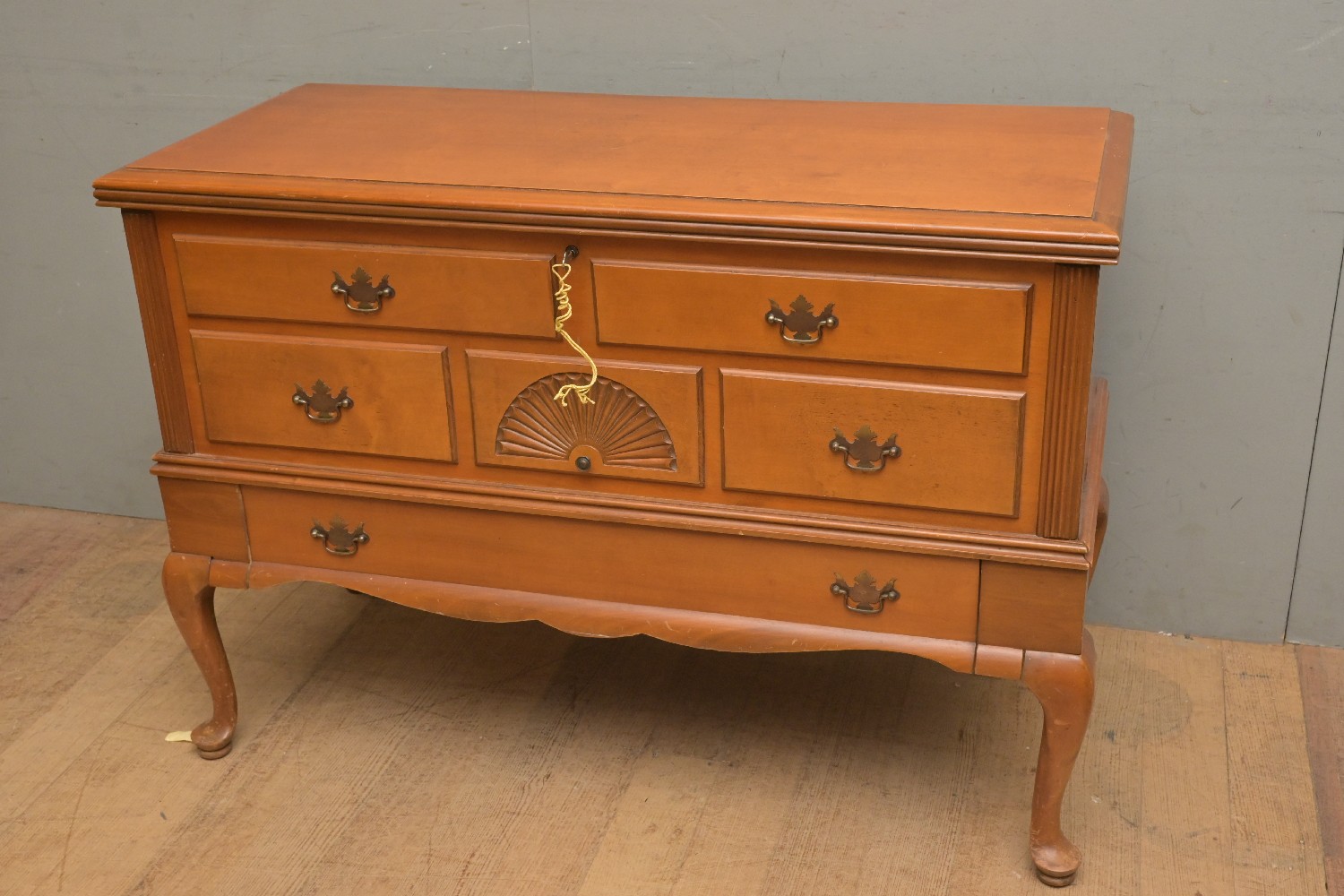 AN AMERICAN CHEST WITH FALSE DRAWER FRONTS (A/F - LOCK BROKEN) (81H X 115W X 50D CM) (PLEASE NOTE THIS HEAVY ITEM MUST BE REMOVED BY CARRIERS AT THE CUSTOMER'S EXPENSE. LEONARD JOEL STAFF CANNOT ASSIST CARRYING THIS ITEM) (LARGE ITEM)