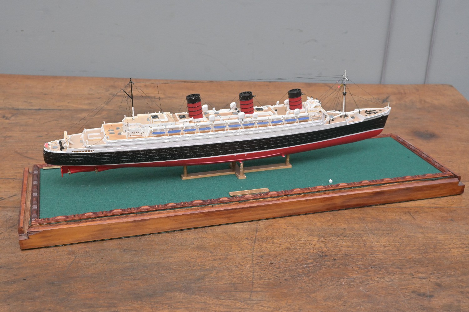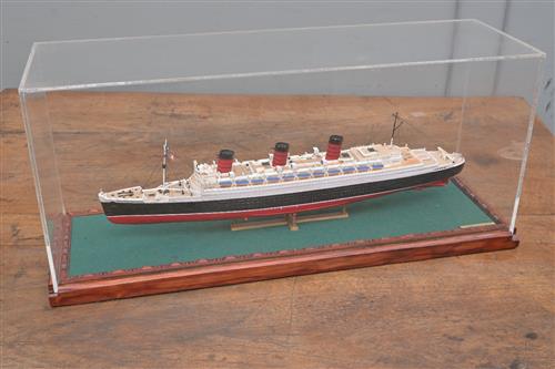 A MODEL OF QUEEN MARY, IN PERSPEX CASE (A/F) (28H X 63W X 20D CM) (LEOANRD JOEL DELIEVRY SIZE: MEDIUM)
