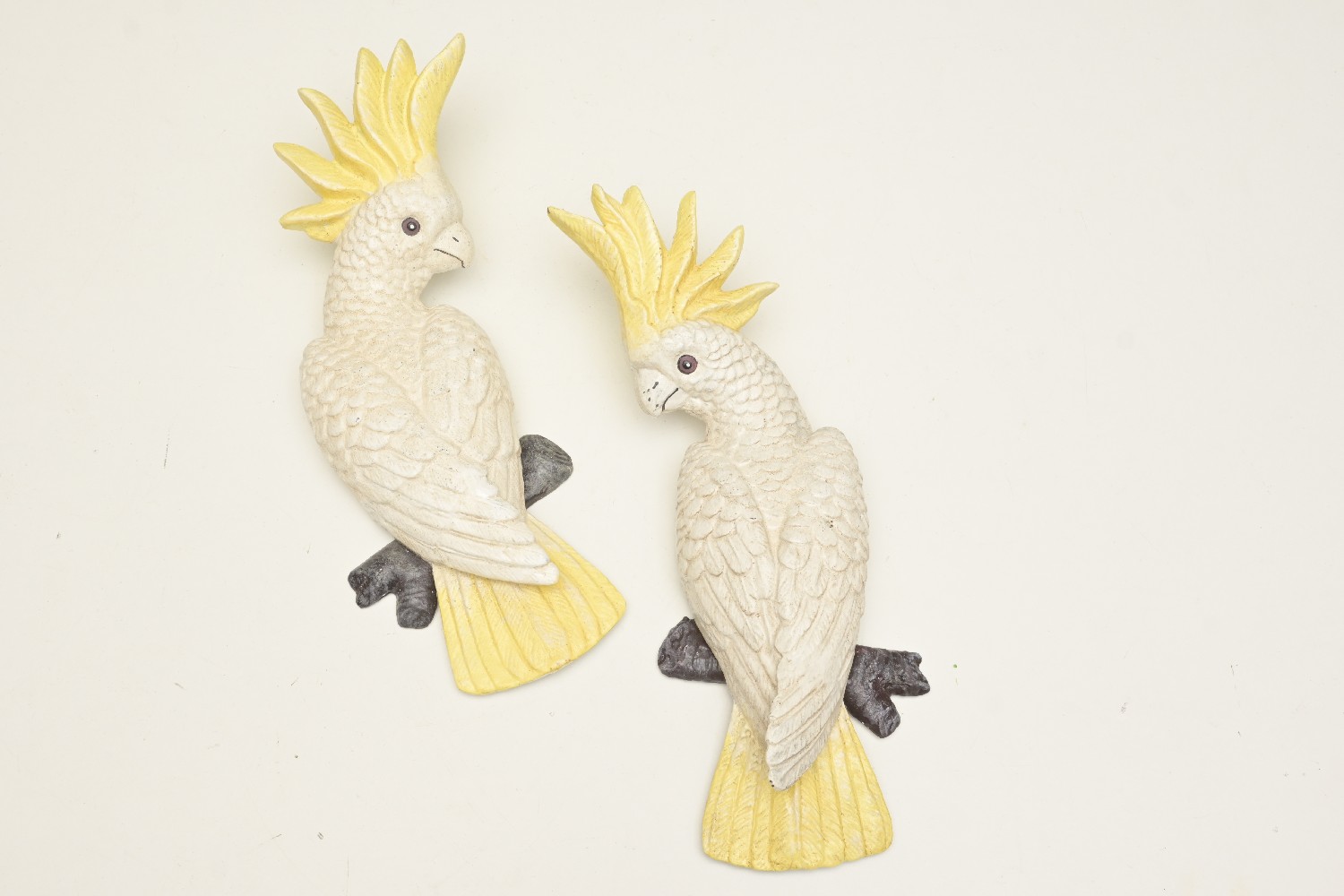 A PAIR OF CAST METAL COCKATOO WALL HANGINGS (37H CM) (LEONARD JOEL DELIVERY SIZE: MEDIUM)
