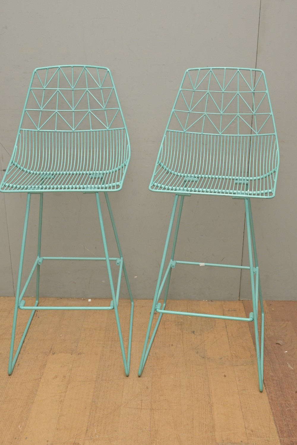 A PAIR OF TURQUOISE BARSTOOLS (111H X 47W X 54D CM) (LEONARD JOEL DELIVERY SIZE: X-LARGE)