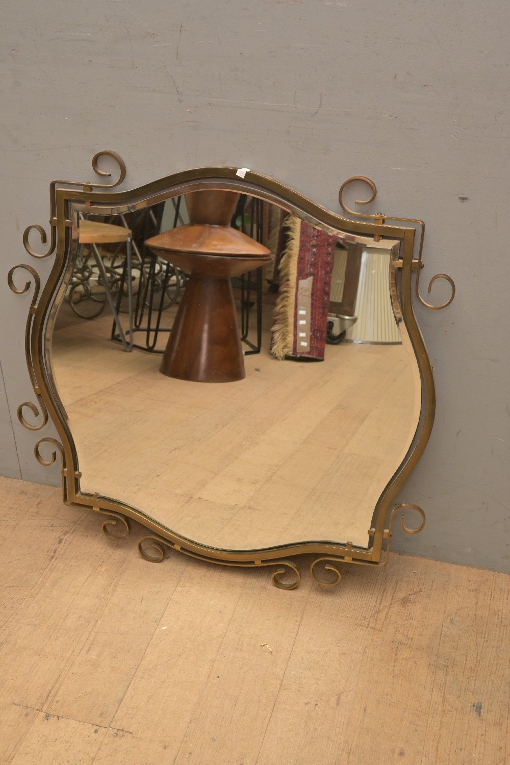 AN ART DECO BRASS MOUNTED BEVEL EDGE MIRROR (A/F) (68H X 68W CM) (LEONARD JOEL DELIVERY SIZE: LARGE)
