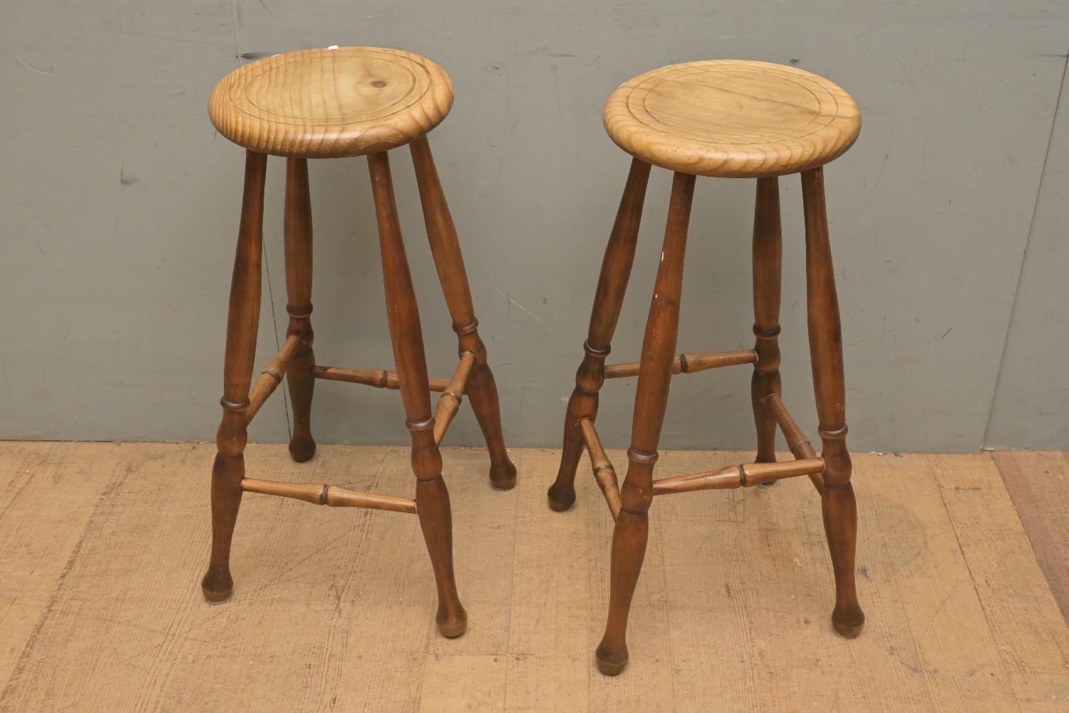A PAIR OF AUSTRALIAN STOOLS BY SUPER CRAFT (A/F) (70H X 37W X 37D CM) (LEONARD JOEL DELIVERY SIZE: LARGE)