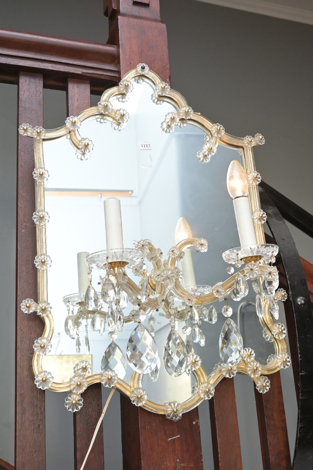 AN ITALIAN MIRROR-BACKED SCONCE (A/F - WITH FOREIGN PLUG) (65H X 47W X 23D CM) (LEONARD JOEL DELIVERY SIZE: LARGE)
