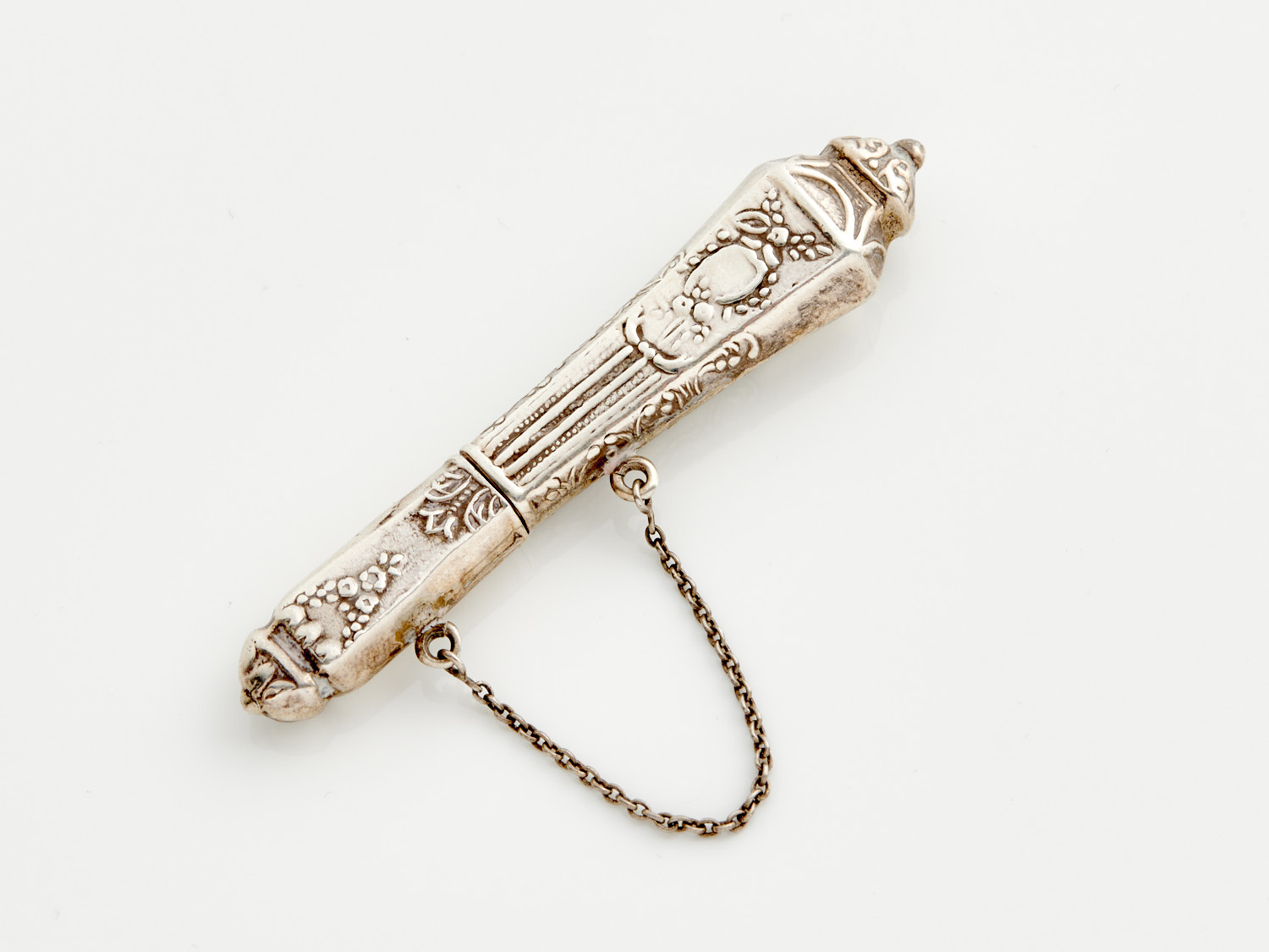AN ANTIQUE FRENCH NEEDLE CASE IN STERLING SILVER, LENGTH 66MM, WEIGHING 10.07GMS