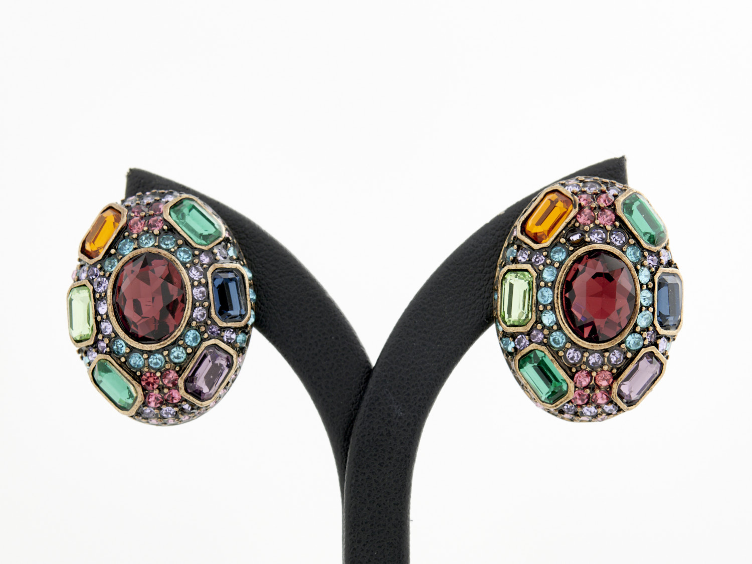 HEIDI DAUS, A PAIR OF GEM-SET EARRINGS IN BASE METAL, TO POST AND CLIP FITTINGS