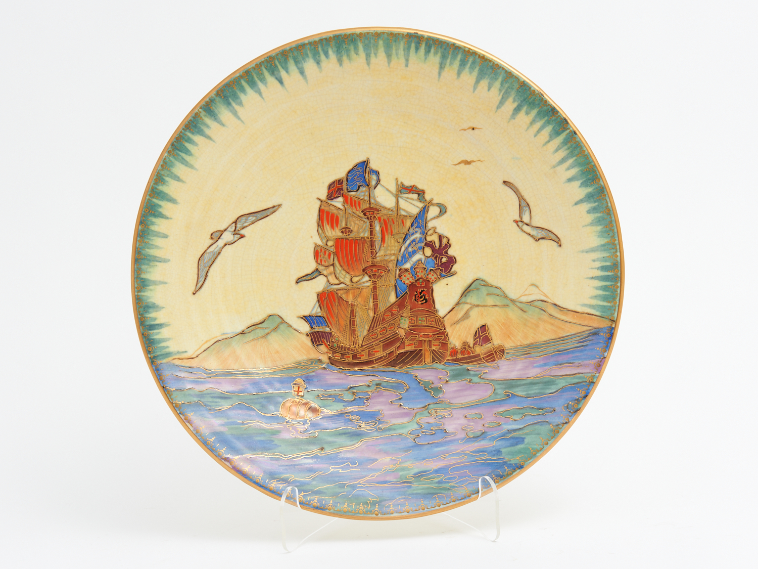 A CROWN DEVON WALL PLAQUE OF A GALLEON DIA.30CM, LEONARD JOEL DELIVERY SIZE: MEDIUM