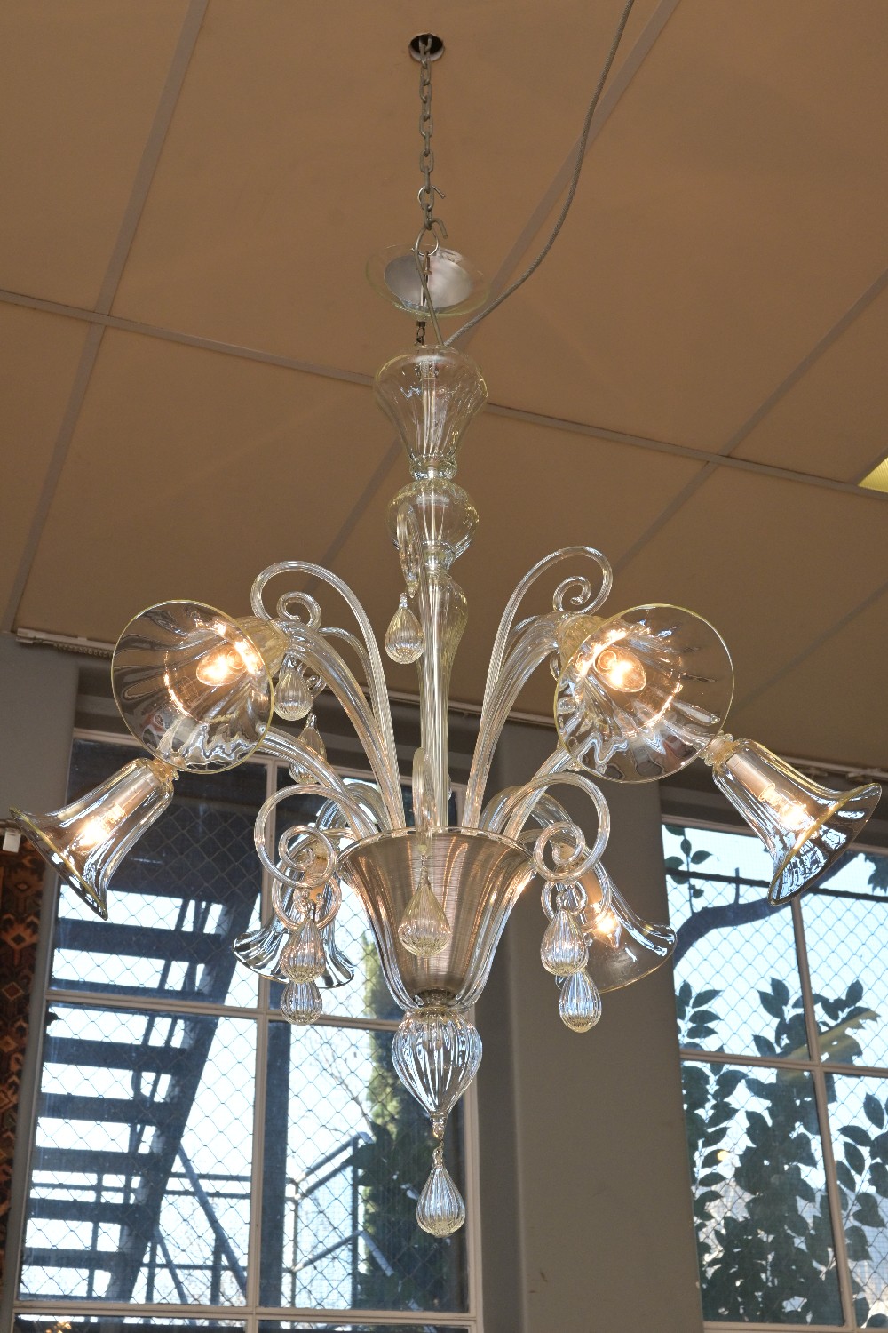 A MAZZUCCATO VENETIAN MURANO CLEAR GLASS SIX GLOBE CHANDELIER (110H X 70D CM) (PLEASE NOTE THIS HEAVY ITEM MUST BE REMOVED BY CARRIERS AT THE CUSTOMER'S EXPENSE. LEONARD JOEL STAFF CANNOT ASSIST CARRYING THIS ITEM) (LARGE ITEM)