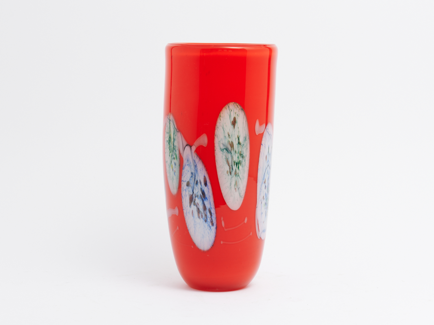 A LARGE RED ART GLASS VASE WITH COLOURED INCLUSIONS 34CM, LEONARD JOEL DELIVERY SIZE: MEDIUM