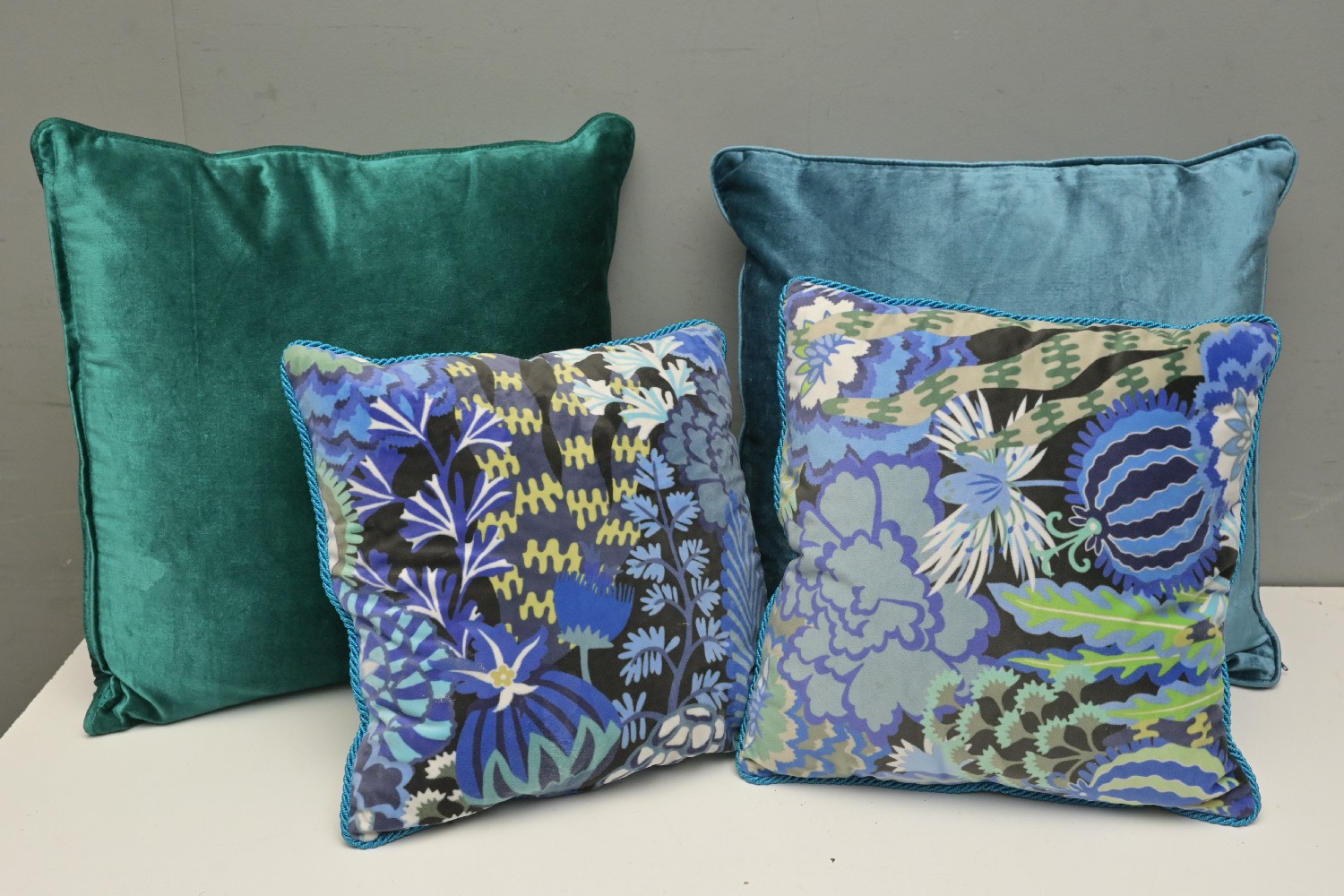 A GROUP OF FOUR DECORATIVE CUSHIONS, AS NEW (48 X 48 CM) (LEONARD JOEL DELIVERY SIZE: MEDIUM)
