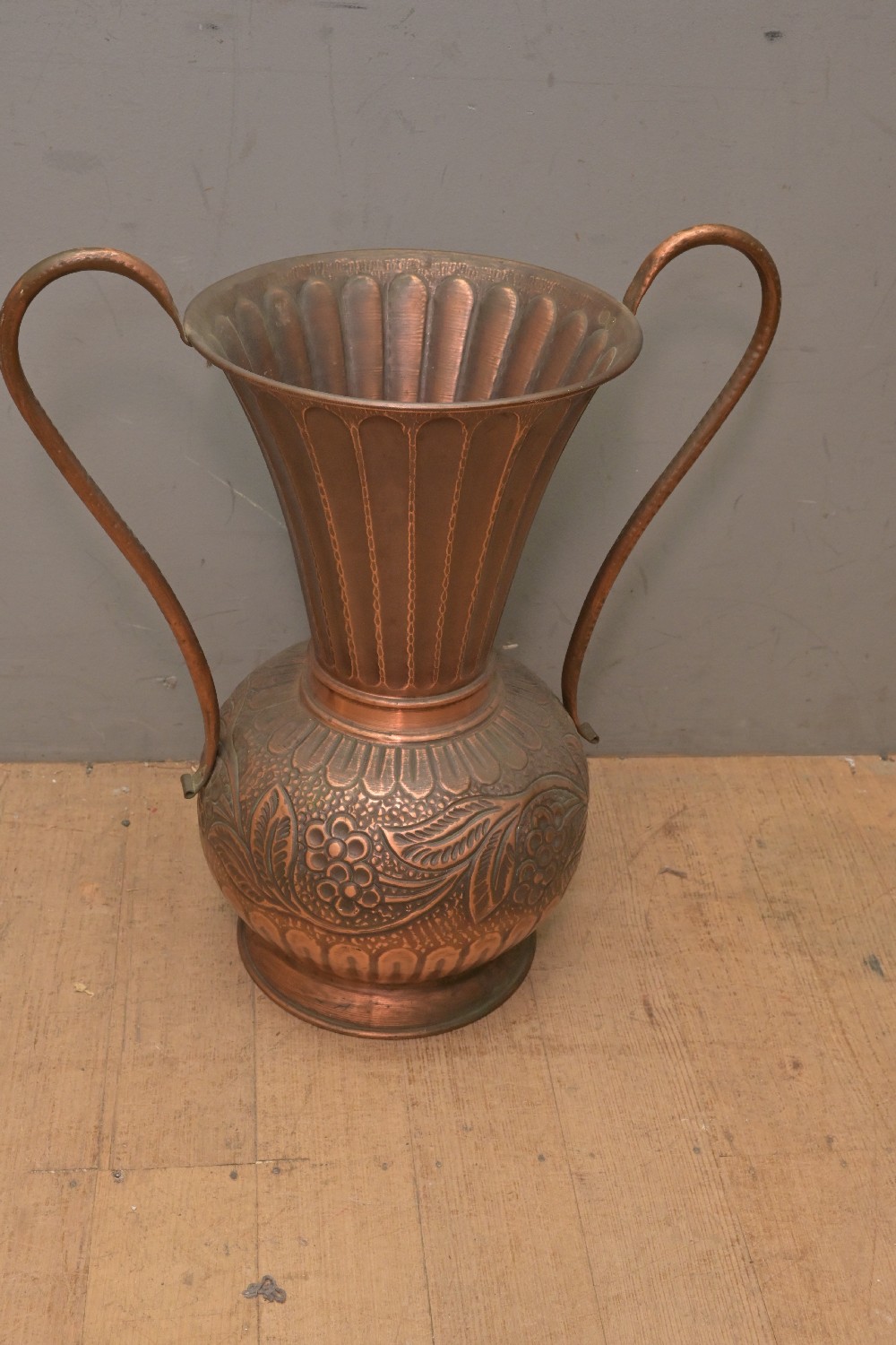 A DECORATIVE PRESSED COPPER VASE (58H X 52W X 30D CM) (LEONARD JOEL DELIVERY SIZE: MEDIUM)