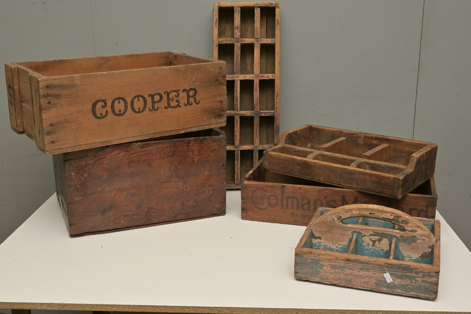 A COLLECTION OF OLD CRATES (26H X 45W X 33D CM) (LEONARD JOEL DELIVERY SIZE: LARGE)