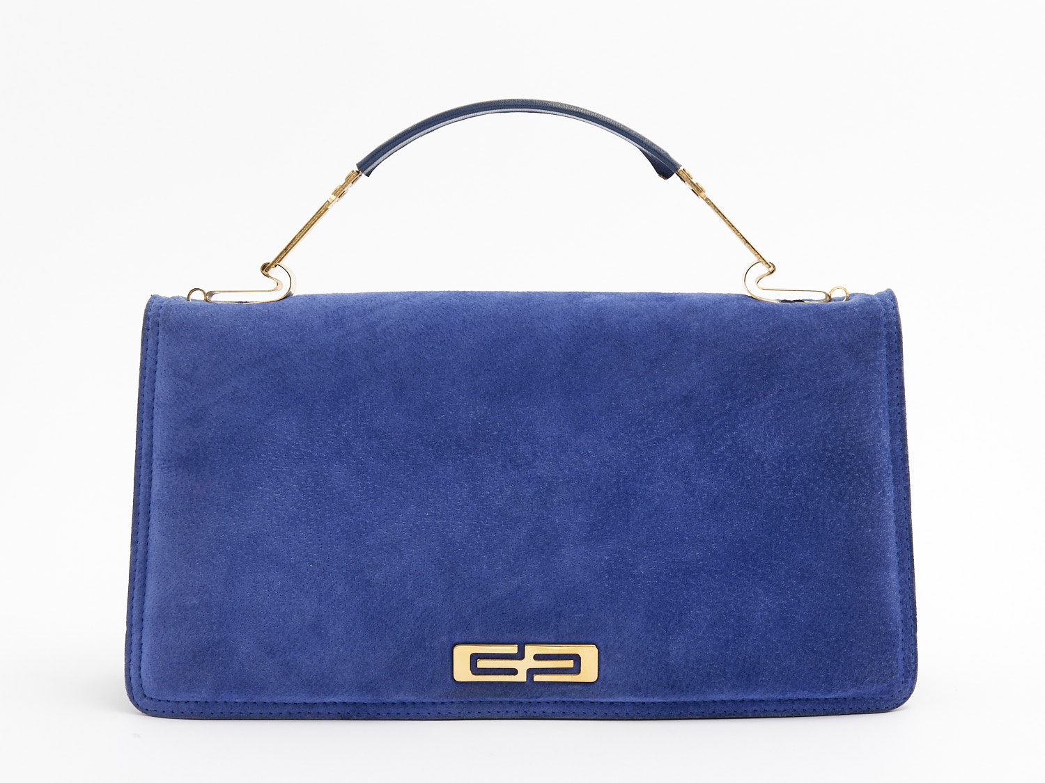 A VINTAGE BLUE SUEDE HAND BAG W.32CM, LEONARD JOEL DELIVERY SIZE: SMALL