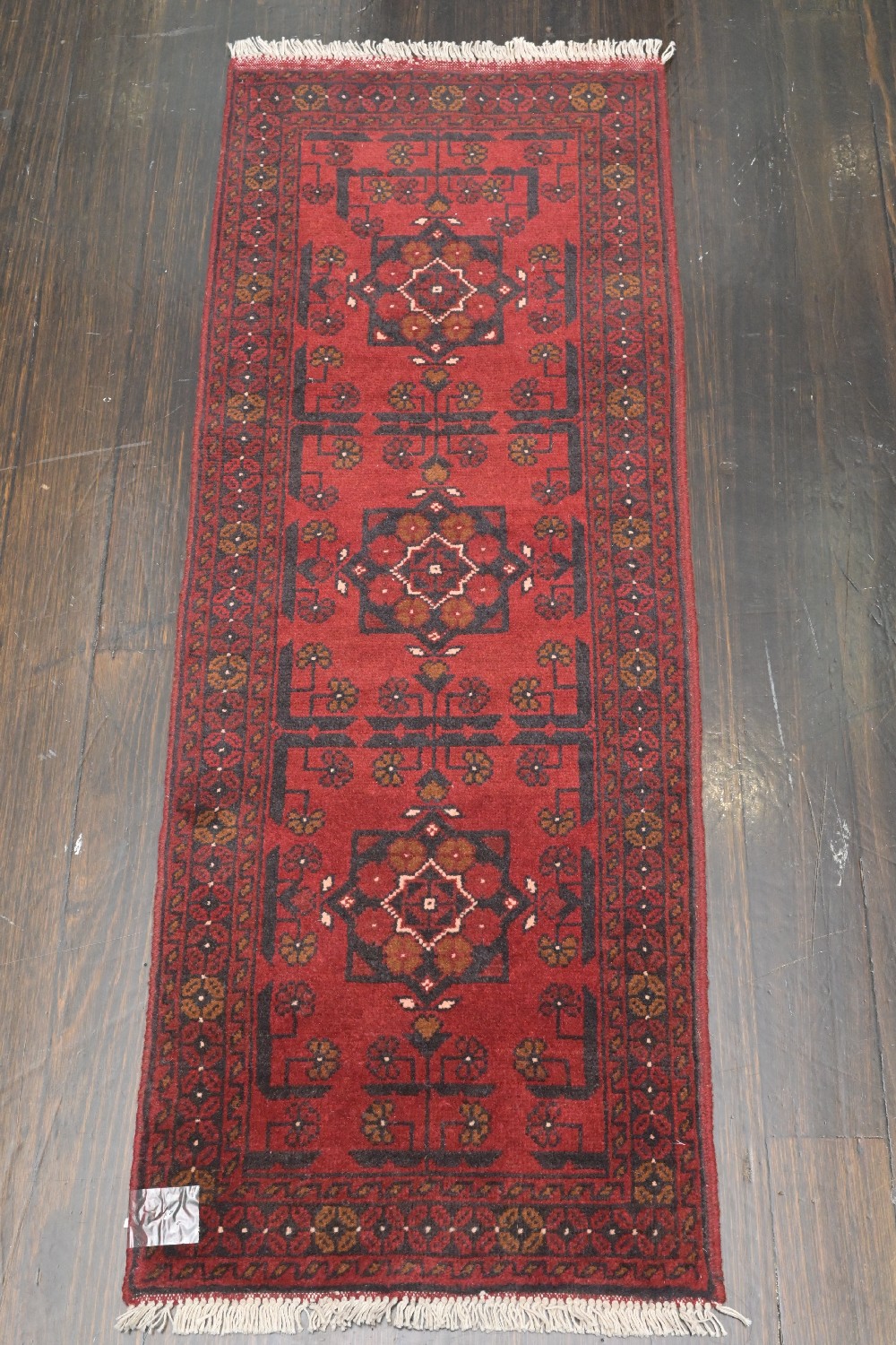 A FINE AFGHAN TREE OF LIFE DESIGN RUNNER, 100% WOOL WEFT AND WOOL BASE (148 X 54 CM) (LEONARD JOEL DELIVERY SIZE: MEDIUM)
