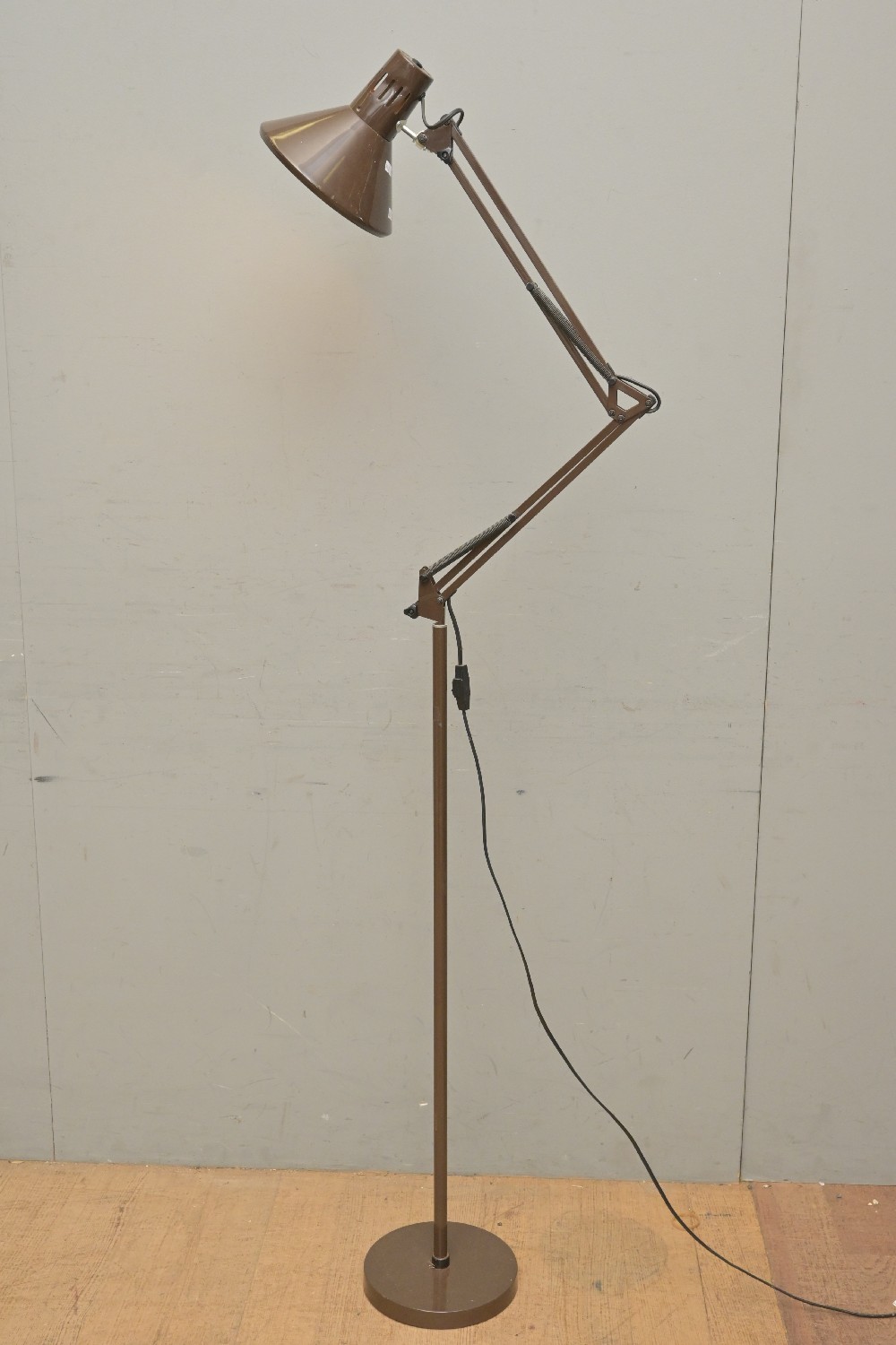 AN ADJUSTABLE FLOOR-STANDING LAMP, IN BROWN (A/F) (165H CM) (LEONARD JOEL DELIVERY SIZE: LARGE)
