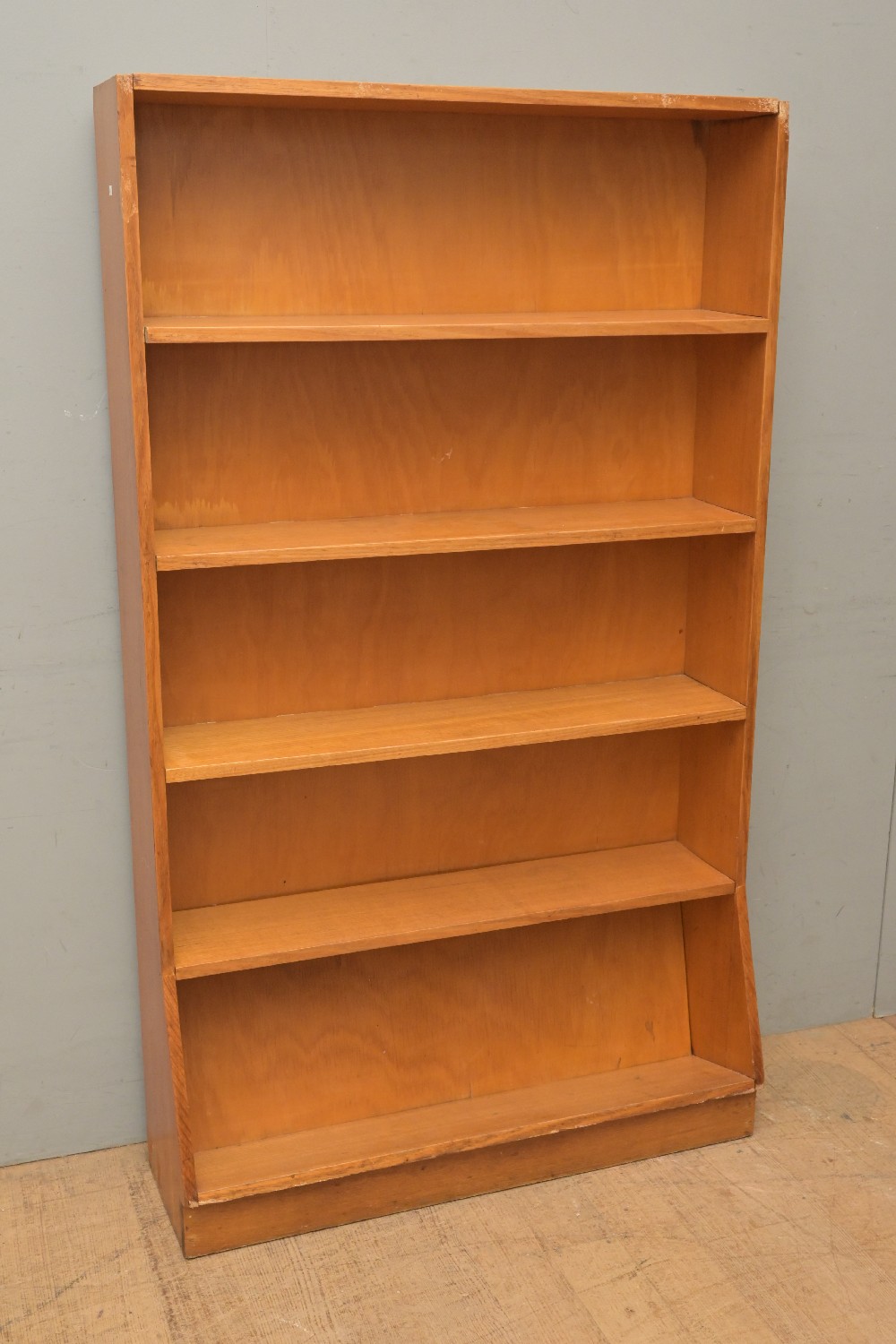 AN AUSTRALIAN SOLID ASH OPEN BOOKCASE (A/F) (156H X 92W X 29D CM) (LEONARD JOEL DELIVERY SIZE: X-LARGE)