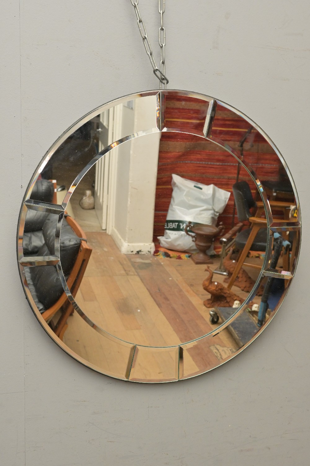 A BEVELLED EDGE CIRCULAR WALL MIRROR (60D CM) (LEONARD JOEL DELIVERY SIZE: MEDIUM)