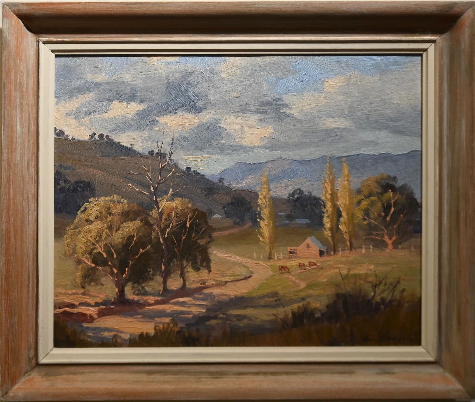 LEON HANSON, BROKEN LIGHT NEAR MACEDON, OIL ON BOARD, SIGNED LOWER RIGHT, 29.5 X 37CM, FRAME SIZE: 41 X 48CM