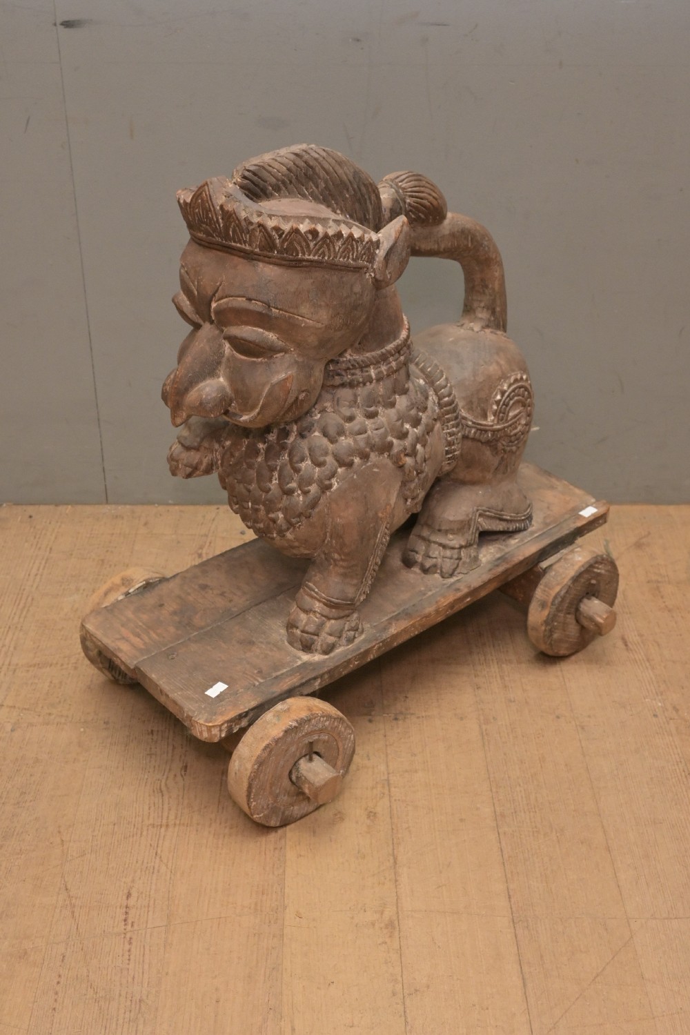 A 19TH CENTURY SOUTH INDIAN LION ON WHEELS (62H X 61W X 37D CM) (LEONARD JOEL DELIVERY SIZE: LARGE)
