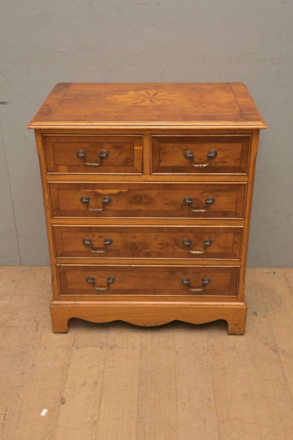 A SMALL CHEST OF DRAWERS IN GEORGE III MANNER, THE TOP AND DRAWER FRONT VENEERED IN YEW (A/F) (72H X 64W X 41D CM) (LEONARD JOEL DELIVERY SIZE: X-LARGE)