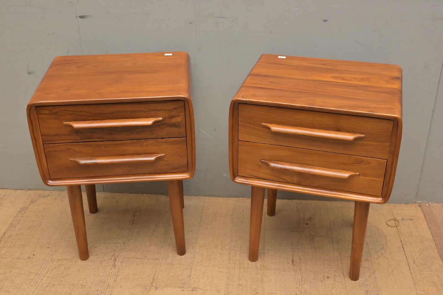 A PAIR OF TEAK BEDSIDE TABLES (56H X 41W X 33D CM) (LEONARD JOEL DELIVERY SIZE: LARGE)