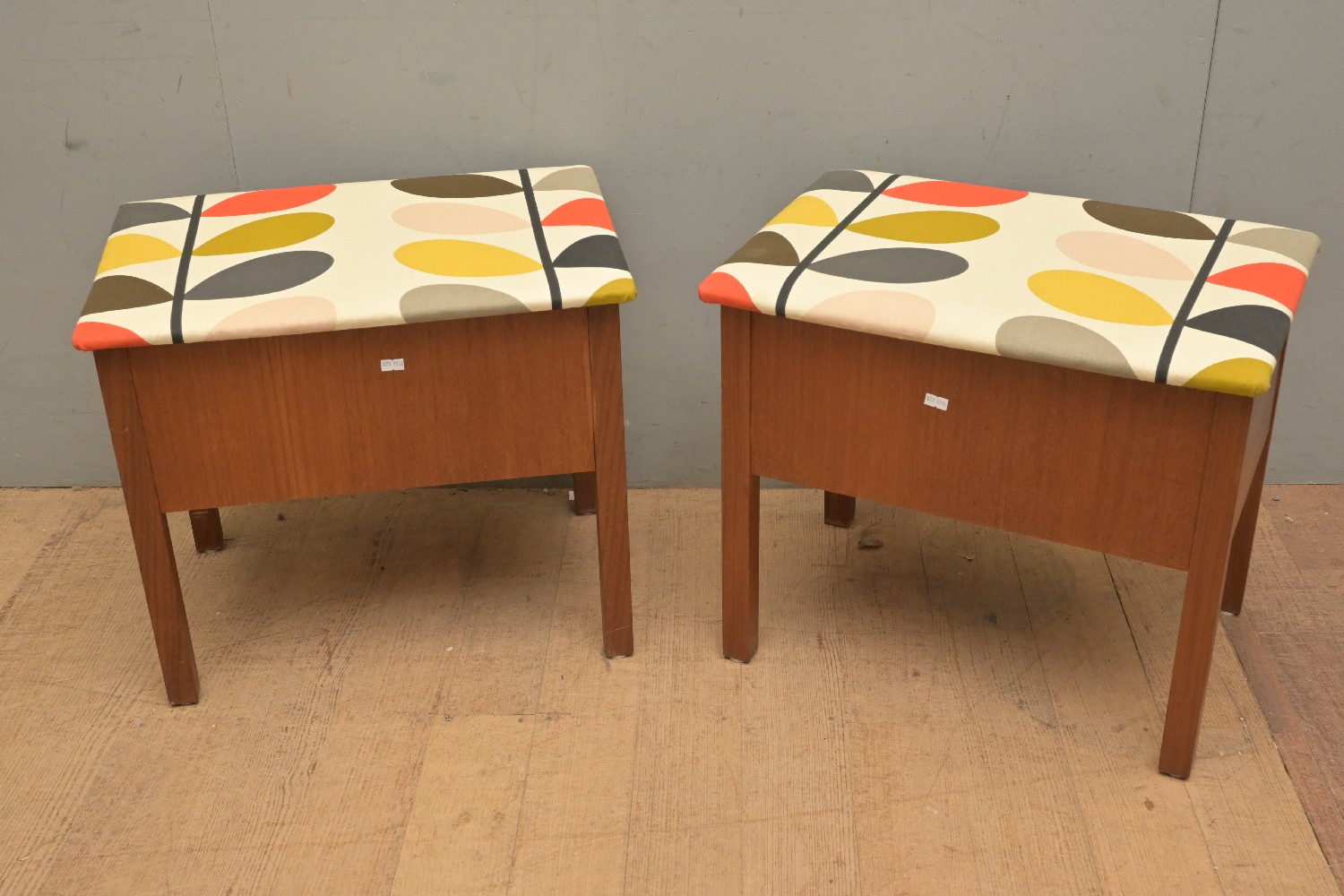 TWO DANISH MID CENTURY STORAGE STOOLS IN ORLA KIELY FABRIC (45H X 52W X 36D CM) (LEONARD JOEL DELIVERY SIZE: LARGE)