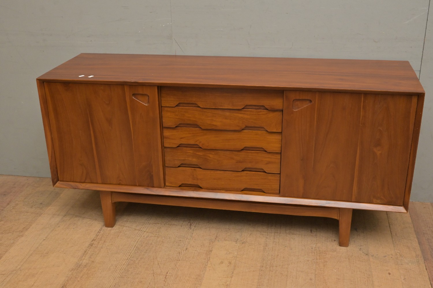 A 1960s-STYLE TEAK SIDEBOARD (70H X 150W X 45D CM) (PLEASE NOTE THIS HEAVY ITEM MUST BE REMOVED BY CARRIERS AT THE CUSTOMER'S EXPENSE. LEONARD JOEL STAFF CANNOT ASSIST CARRYING THIS ITEM) (LARGE ITEM)