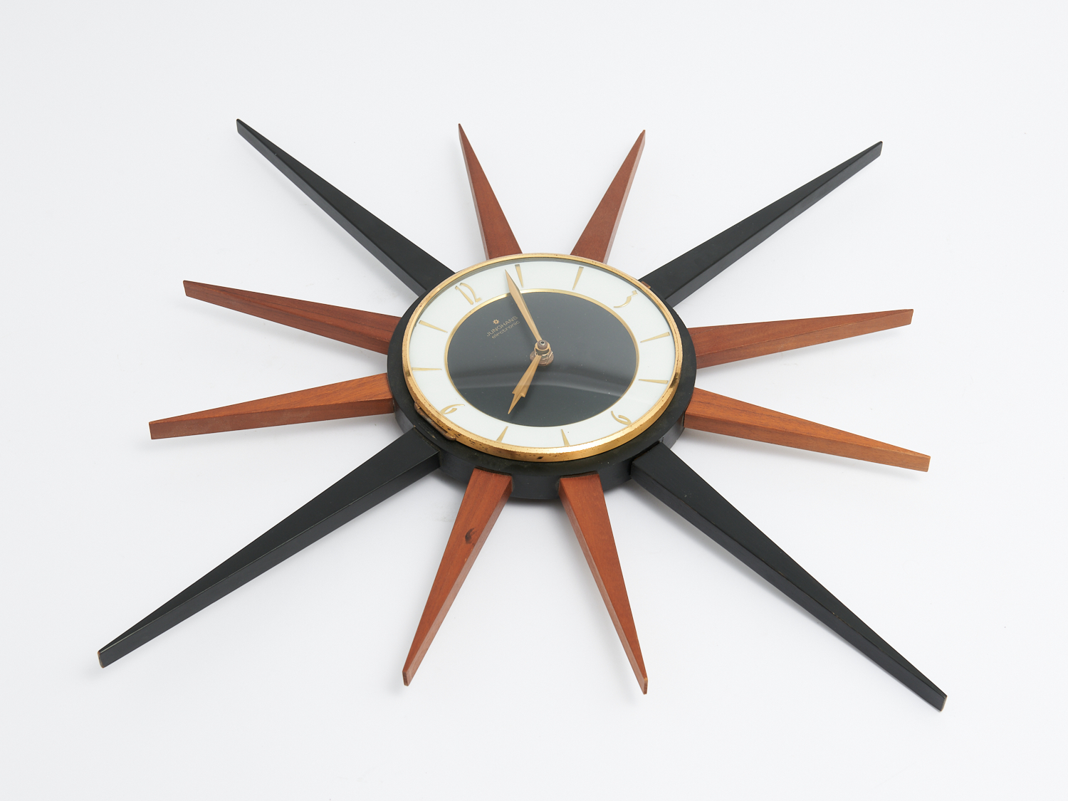 A VINTAGE GERMAN STARBURST WALL CLOCK FOR JUNGHANS ELECTRONIC DIA.64.5CM, LEONARD JOEL DELIVERY SIZE: MEDIUM