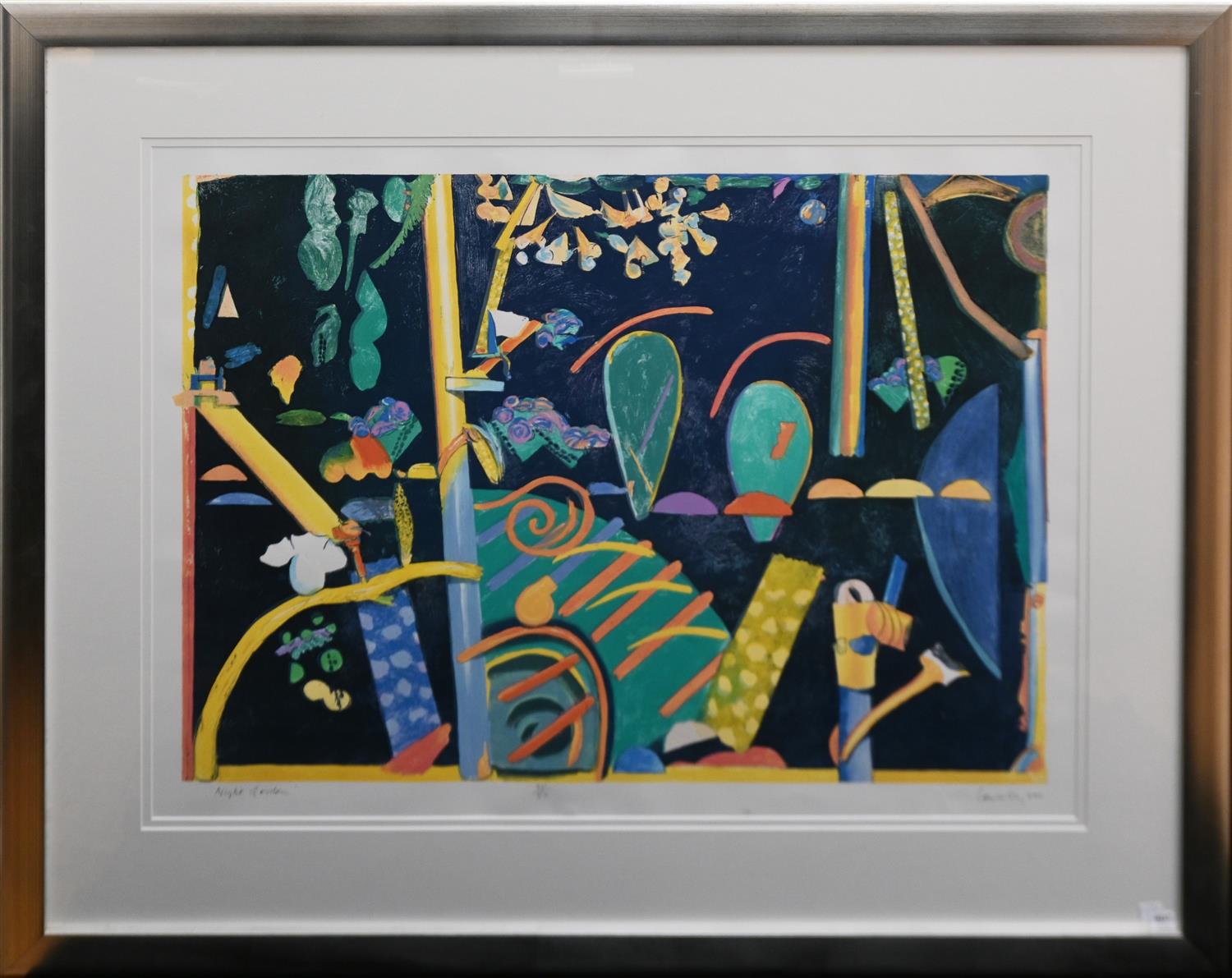 COLIN LANCELEY, NIGHT GARDEN 2001, SCREENPRINT ED. 35/50, SIGNED, TITLED, DATED AND EDTIONED BELOW IMAGE, 65 X 90CM (IMAGE), FRAME SIZE: 106 X 129CM