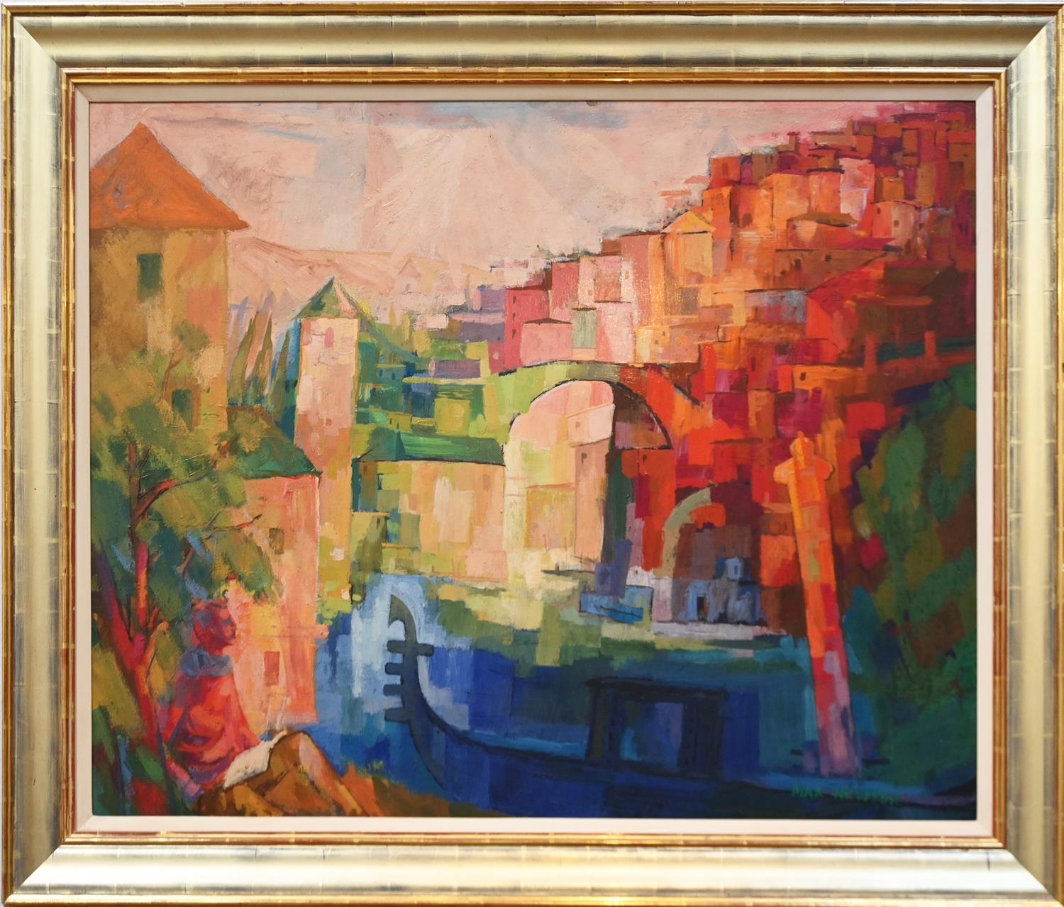 MAX NEWTON, ITALIAN SUMMER, OIL ON BOARD, SIGNED LOWER LEFT, TITLED VERSO, 74 X 99.5CM, FRAME SIZE: 102 X 118CM