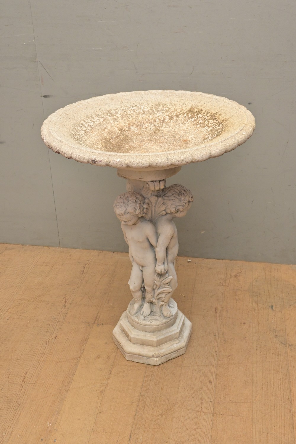 A CAST CEMENT SCULPTURAL BIRD BATH (A/F) (76H X 57D CM) (PLEASE NOTE THIS HEAVY ITEM MUST BE REMOVED BY CARRIERS AT THE CUSTOMER'S EXPENSE. LEONARD JOEL STAFF CANNOT ASSIST CARRYING THIS ITEM) (LARGE ITEM)
