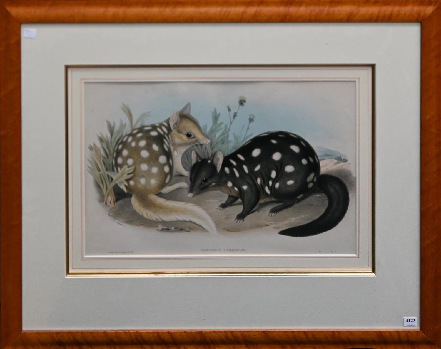 JOHN GOULD, DASYURUS VIVERRINUS, HAND COLOURED LITHOGRAPH, 35 X 52CM, FRAME SIZE: 68 X 85CM