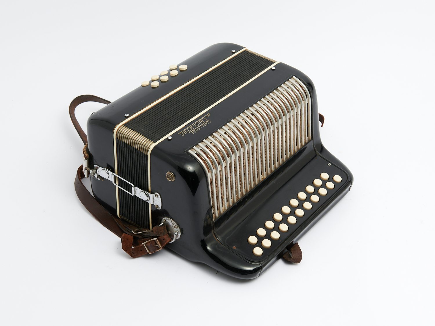 A VINTAGE ITALIAN CHALLENGE BUTTON ACCORDION BY I.BUSILACCHIO W.30CM (A/F), LEONARD JOEL DELIVERY SIZE: MEDIUM