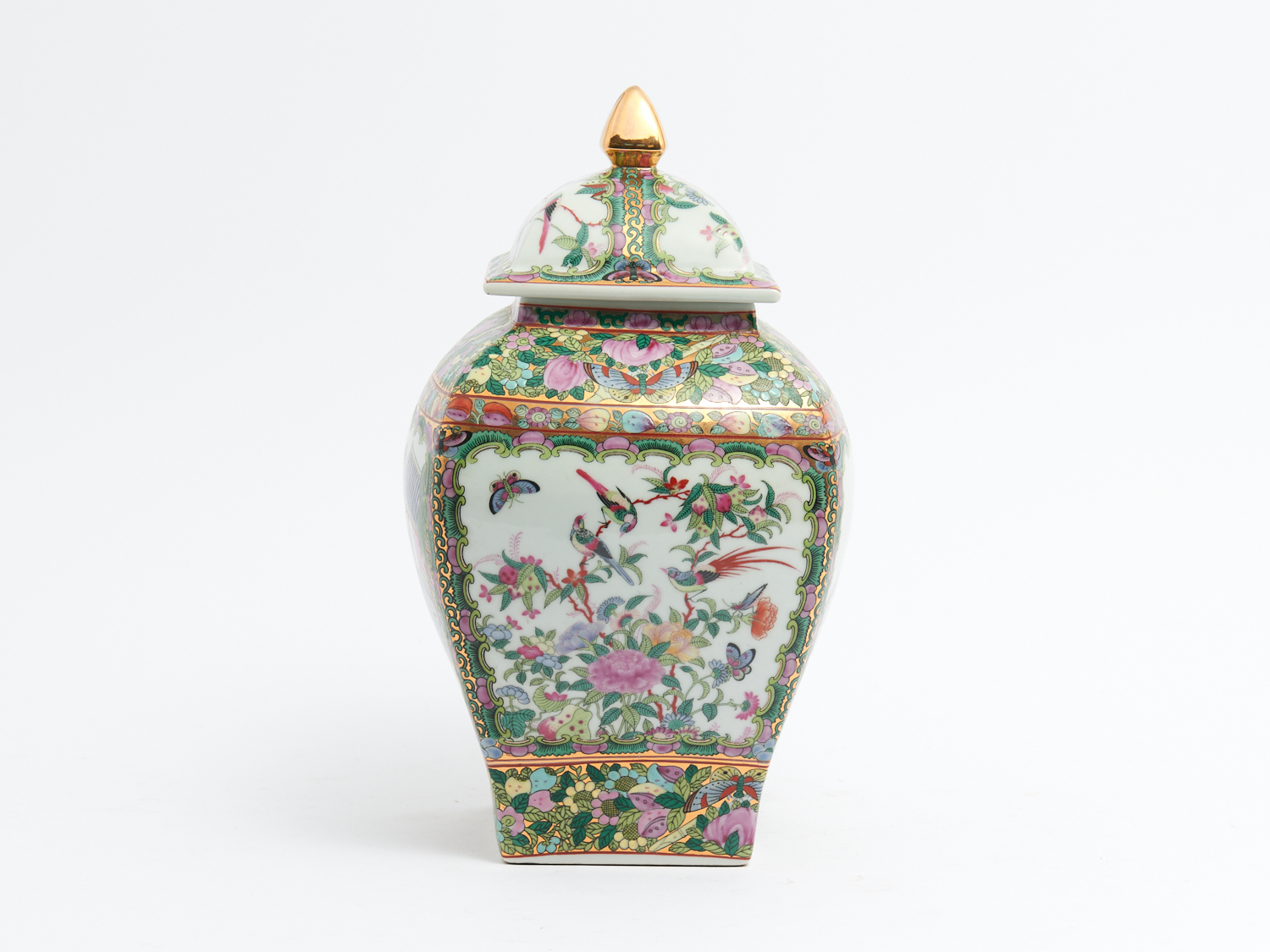 A SIGNED CHINESE ENAMELLED FAMILE VERTE SQUARE FORM TAPERING GINGER JAR H.32CM, LEONARD JOEWL LOCAL DELIVERY: MEDIUM
