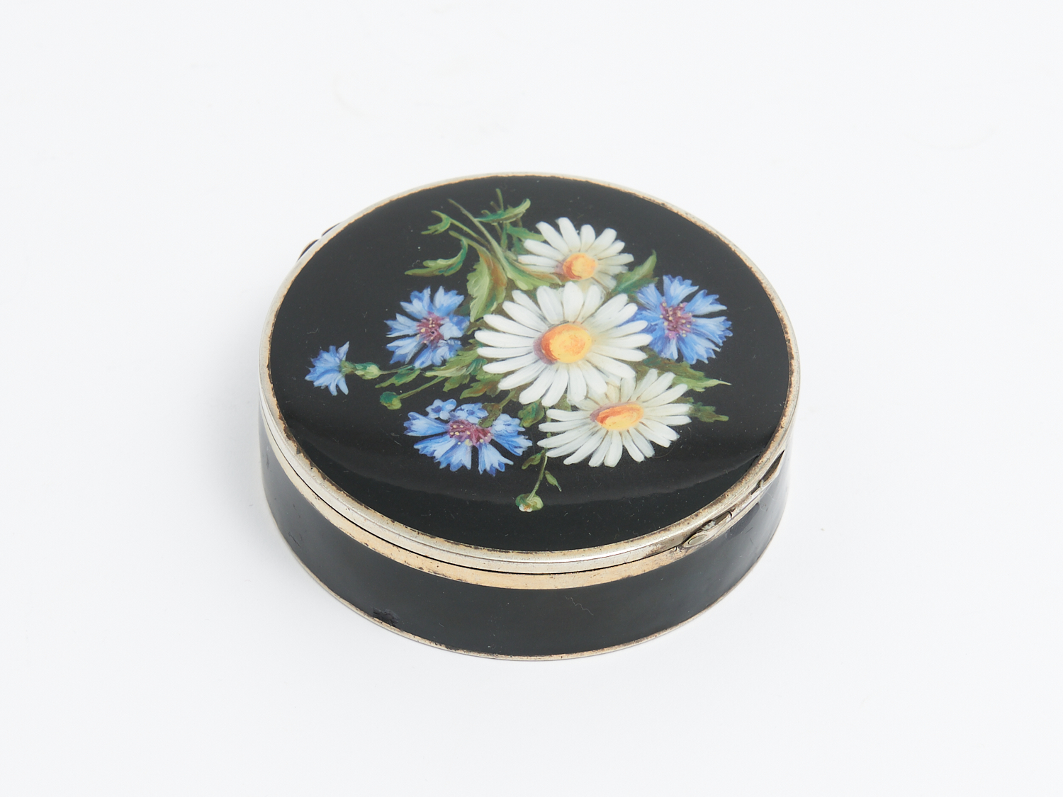 A VINTAGE 1920S AUSTRIAN SILVER AND ENAMEL FLOWER DECORATED LIDDED JEWELRY BOX