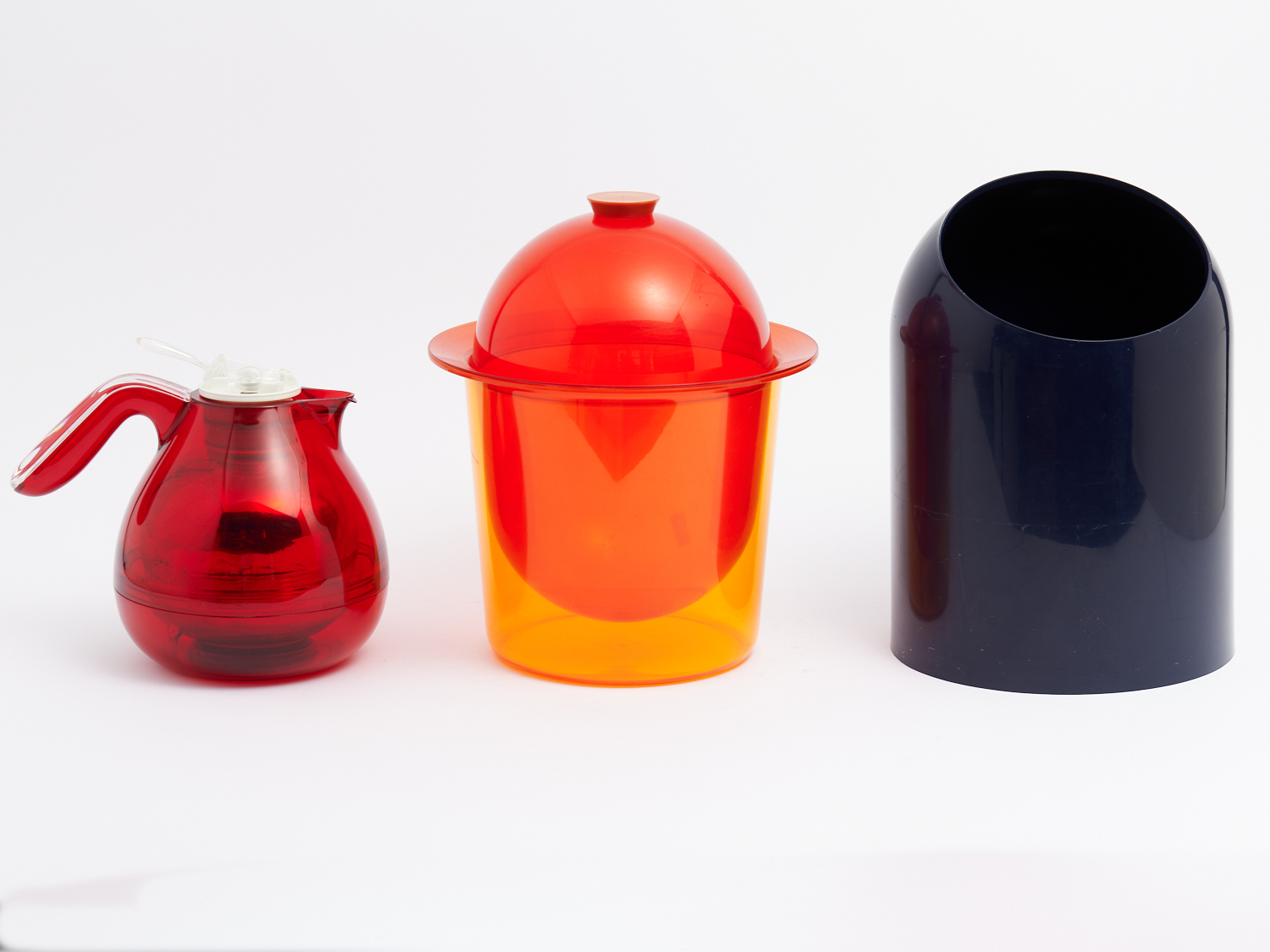 A MAKIO HASUIKE WINE COOLER, A DÉCOR ORANGE LIDDED ICE BUCKET AND A GUZZINI WATER JUG H.31CM (LARGEST) LEONARD JOEL LOCAL DELIVERY: MEDIUM