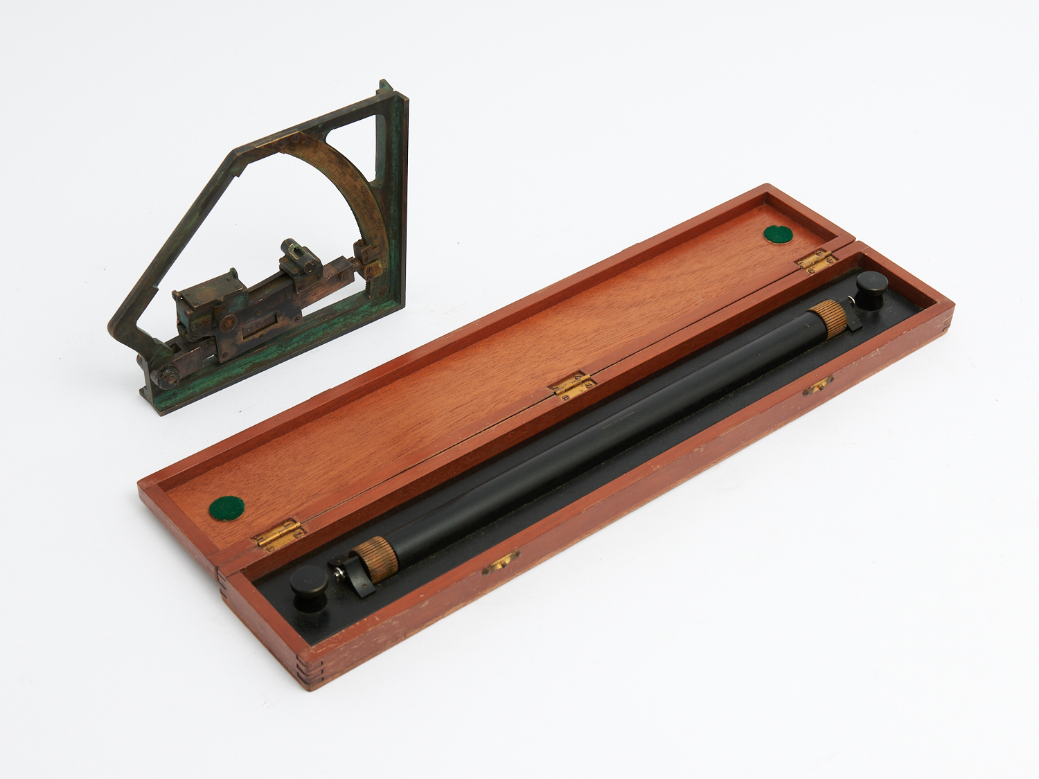 TWO EARLY 20TH CENTURY MILITARY BRASS MEASURING ITEMS INCLUDING ROLLER RULER BY HARLING LONDON AND MARX BUDAPEST L.48CM, LEONARD JOEL LOCAL DELIVERY: SMALL
