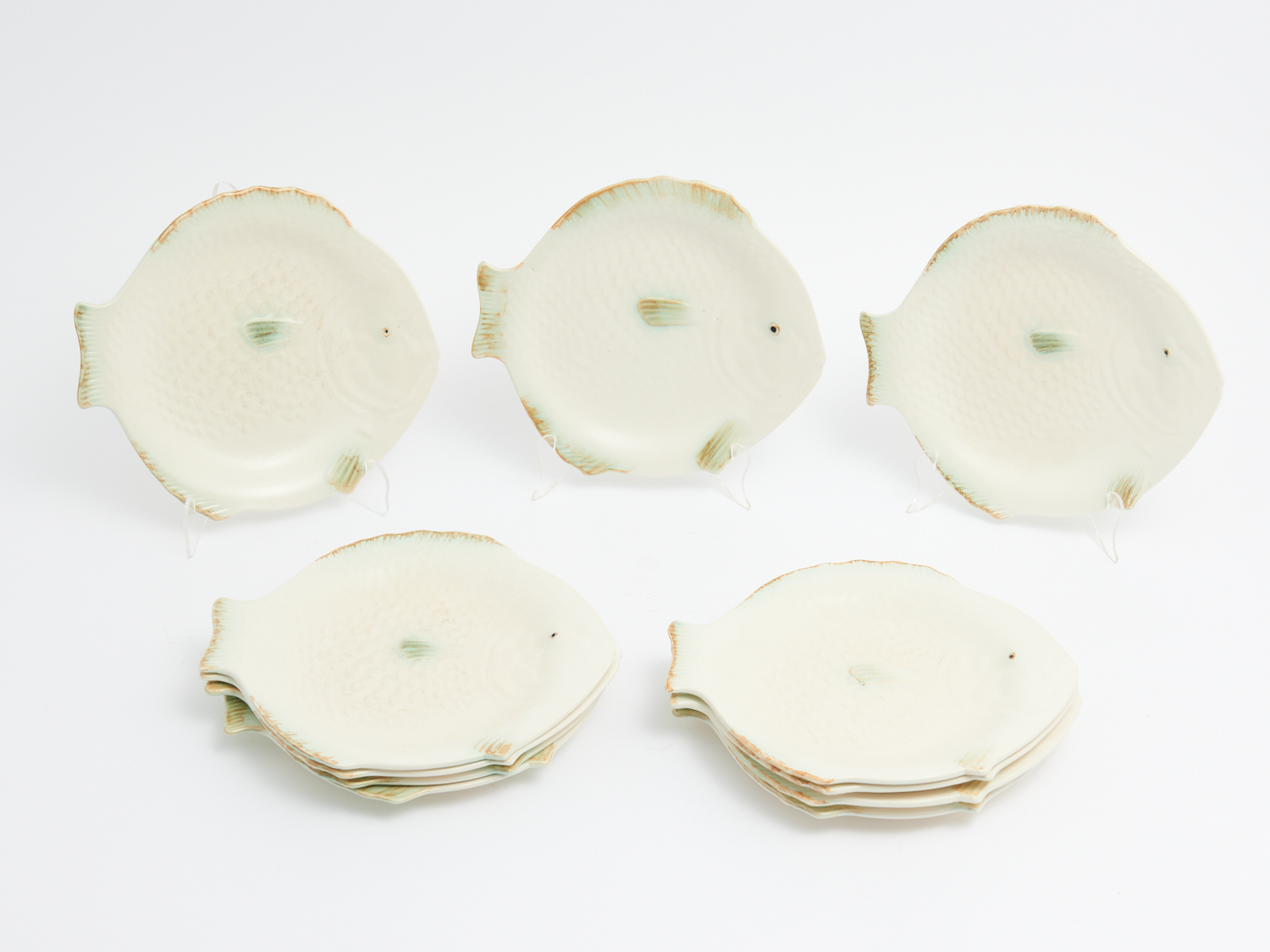 A SET OF ELEVEN 1940S ENGLISH SHORTER AND SON GLAZED FISH PLATES L.23CM, LEONARD JOEL LOCAL DELIVERY: SMALL