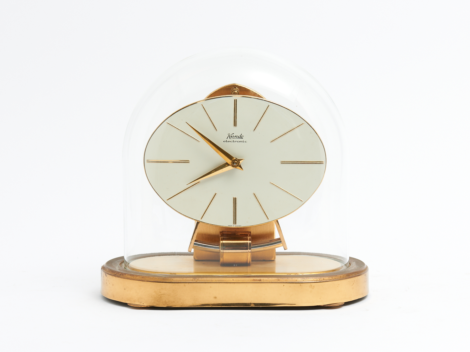 A VINTAGE GERMAN KUNDO ELECTRONIC GLASS DOME CLOCK H.23CM, LEONARD JOEL LOCAL DELIVERY: SMALL