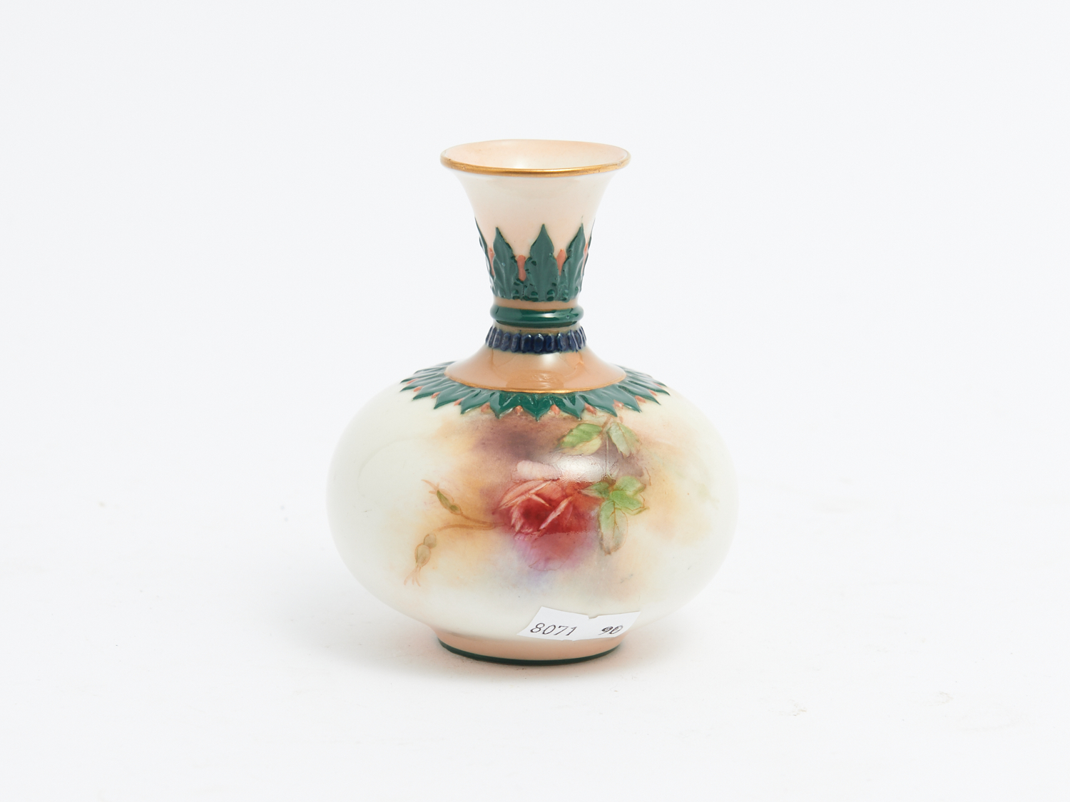 A 1900S ENGLISH HAND PAINTED HADLEYS WORCESTER BUD VASE H.10CM, LEONARD JOEL DELIVERY SIZE: SMALL