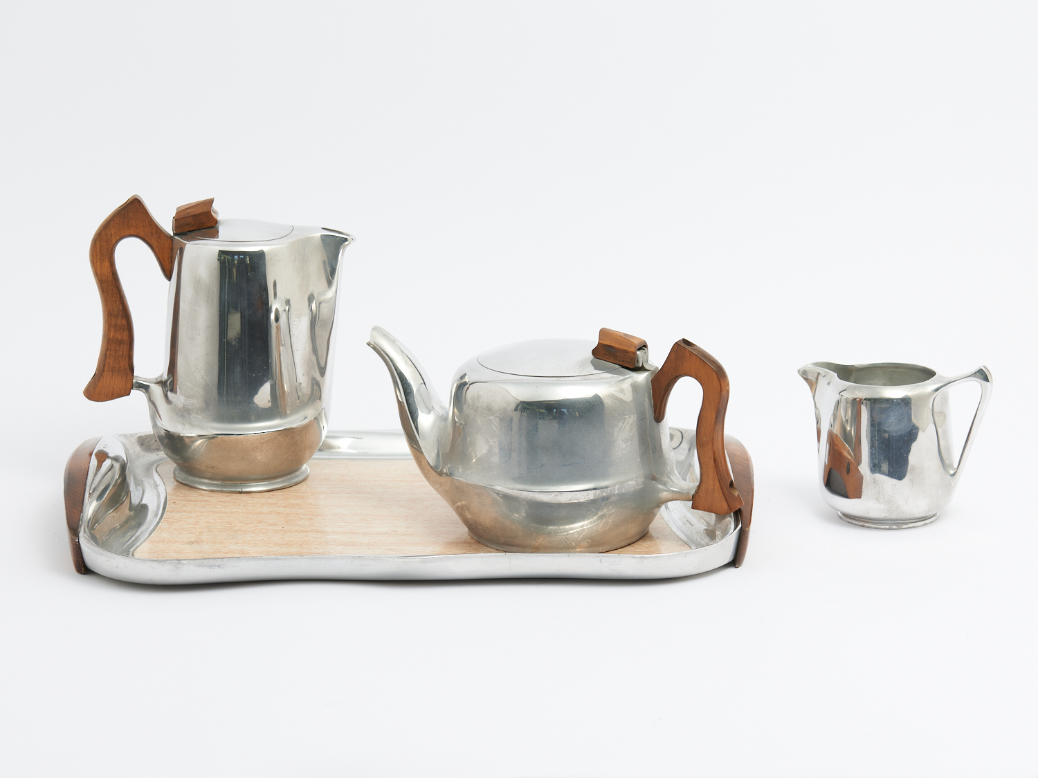 A 1950'S ENGLISH PICQUOT TEA SET WITH TRAY W.43CM (TRAY), LEONARD JOEL DELIVERY SIZE: MEDIUM