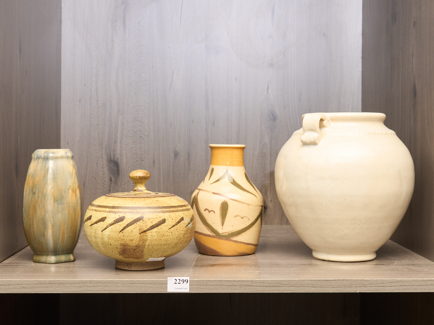 FOUR PIECES OF EARLY AUSTRALIAN POTTERY H.20CM (TALLEST), LEONARD JOEL DELIVERY SIZE: LARGE