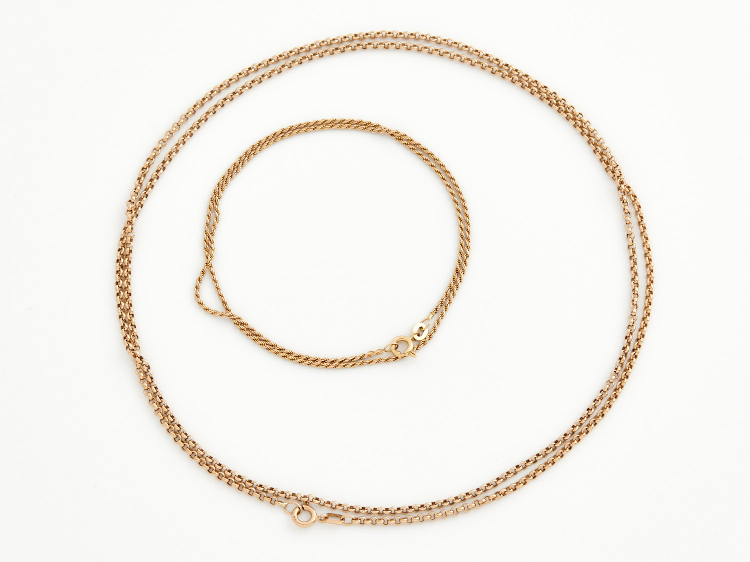 TWO CHAIN NECKLACES IN 9CT GOLD, MEASURING 400MM AND 800MM, 13.94GMS