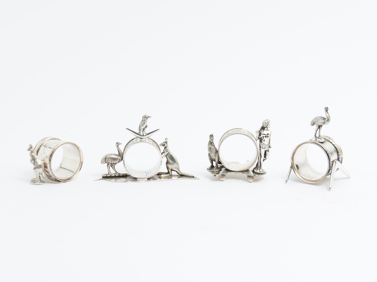 A SET OF AUSTRALIAN EPNS NAPKIN RINGS W.12CM (WIDEST), LEONARD JOEL DELIVERY SIZE: SMALL