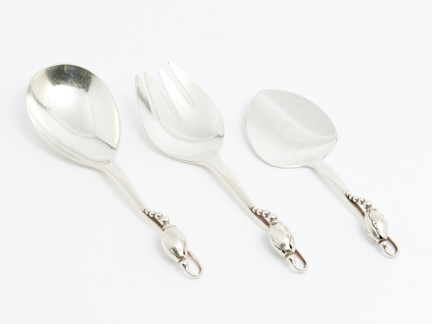 A SET OF THREE GEORG JENSEN STERLING SILVER SERVERS 270G L.22CM (LONGEST), LEONARD JOEL DELIVERY SIZE: SMALL
