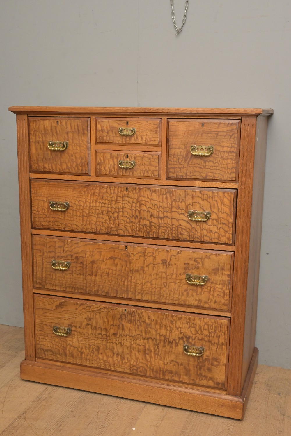 A LATE VICTORIAN TAMO ASH CHEST OF DRAWERS (141H X 117W X 58D CM) (PLEASE NOTE THIS HEAVY ITEM MUST BE REMOVED BY CARRIERS AT THE CUSTOMER'S EXPENSE. LEONARD JOEL STAFF CANNOT ASSIST CARRYING THIS ITEM) (LARGE ITEM)