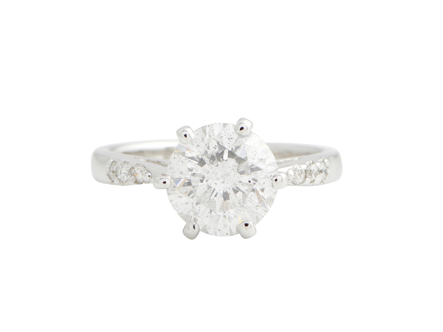 Centring a claw-set brilliant-cut diamond weighing 2.84 carats, to shoulders pavé-set with brilliant cut diamonds, the diamonds together weighing approximately 0.07 carats, mounted in 18ct white gold, size M1/2, gross weight approximately 4 grams.