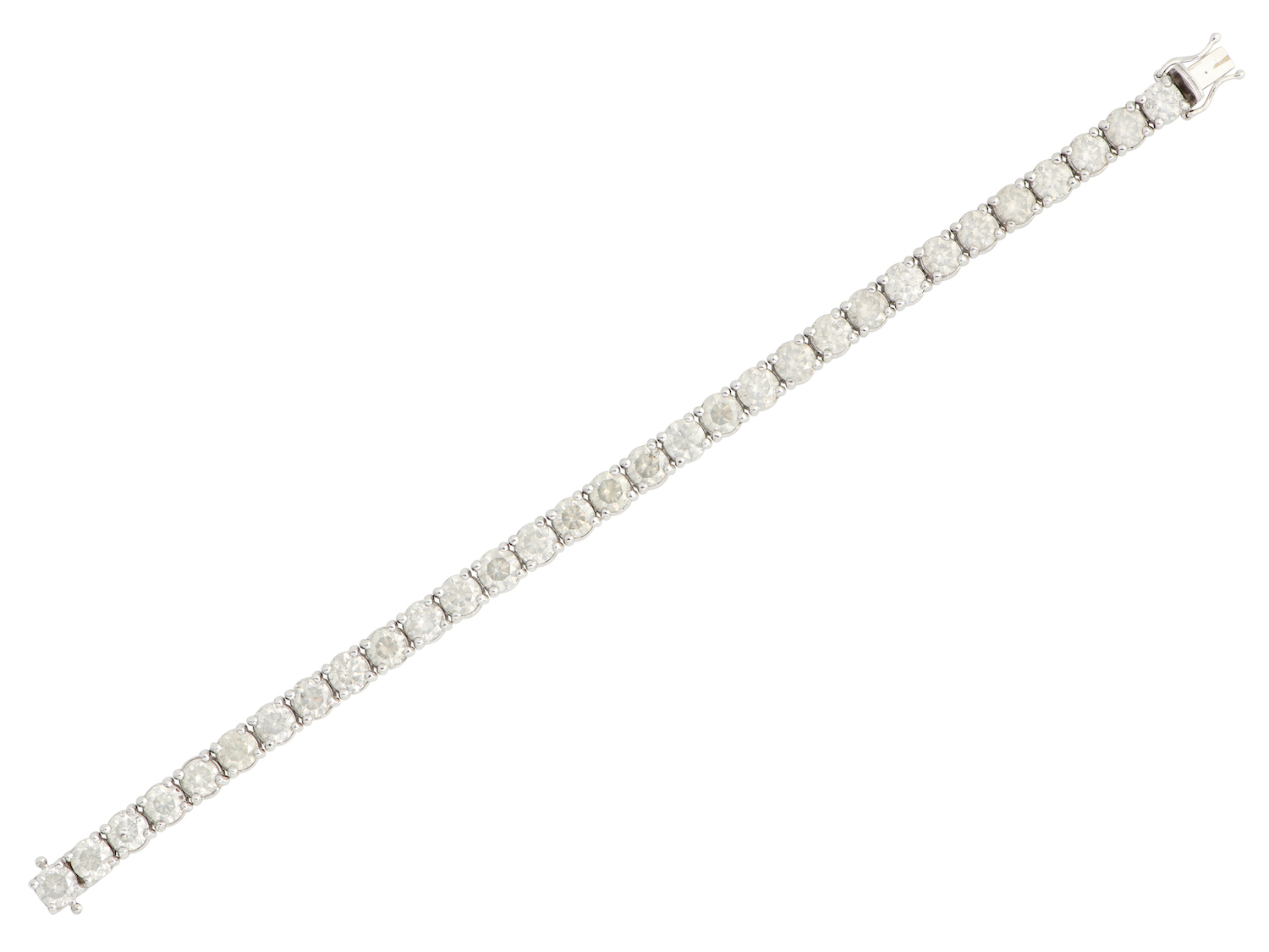 Modelled as a continuous line of claw-set brilliant-cut diamonds, the diamonds together weighing approximately 18.55 carats, completed by a concealed clasp, mounted in 18ct white gold, length 175mm, gross weight approximately 26.8 grams