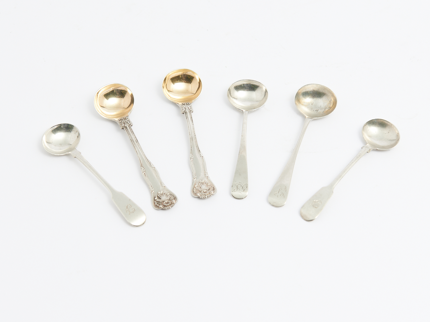 THREE PAIRS OF GEORGIAN HALLMARKED STERLING SILVER SALT SPOONS 78G L.10.5CM, LEONARD JOEL DELIVERY SIZE: SMALL